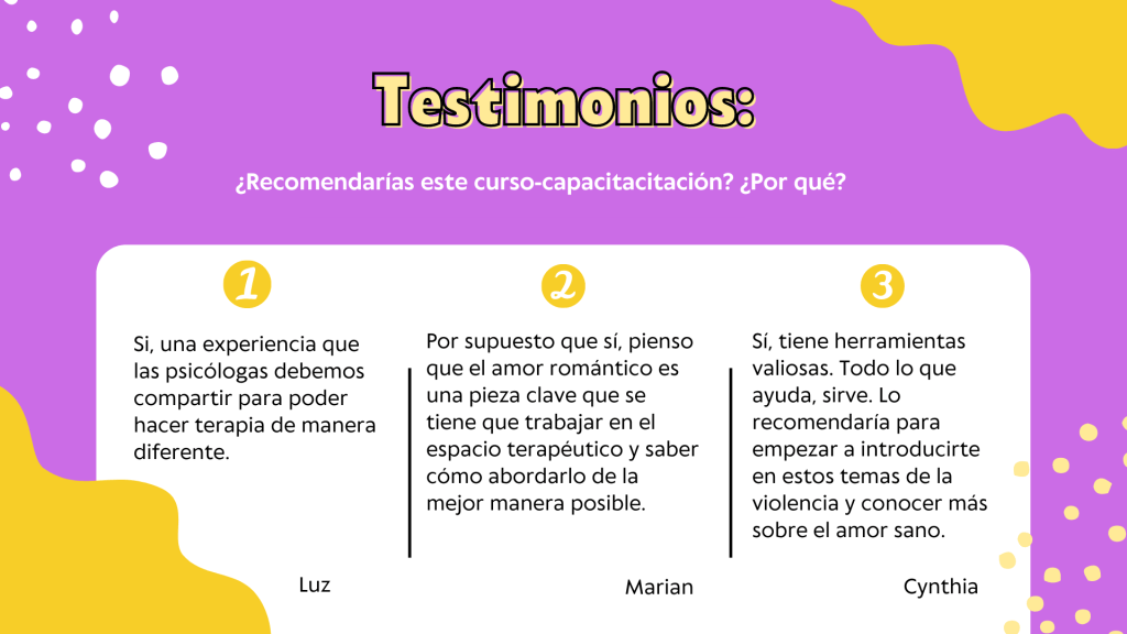 - Desde el 2023 imparto capacitaciones para que otras psicólogas fortalezcan su intervención feminista.