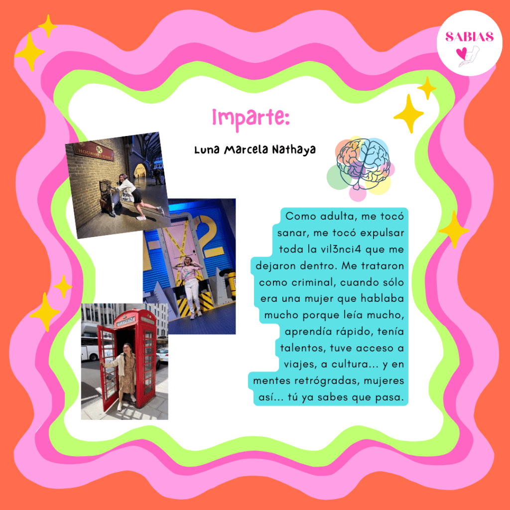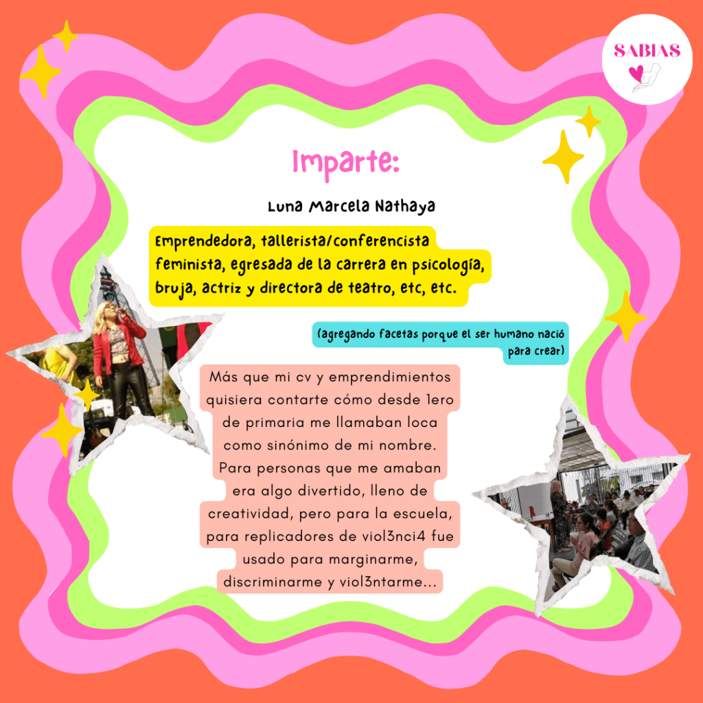- Creadora de SABIAS, Revista Brujas y Manicomio de Escritoras.